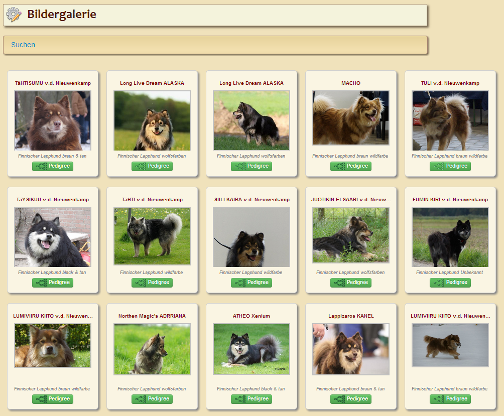 Die Bildergalerie zeigt Bilder der verschiedenen Kategorien in einer Galeriansicht. Verwaltet werden die Bilder über die Bilder und Dokumente im Datenverwaltungsmenü.