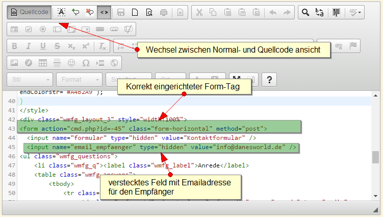 - Fügen Sie den Quelltext des Formulares in den Editor ein
