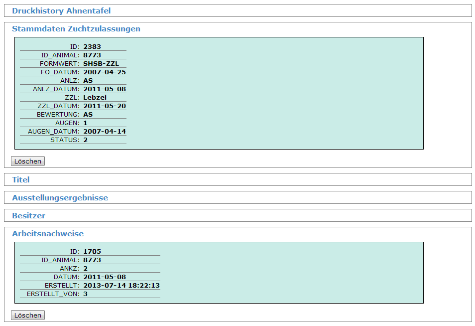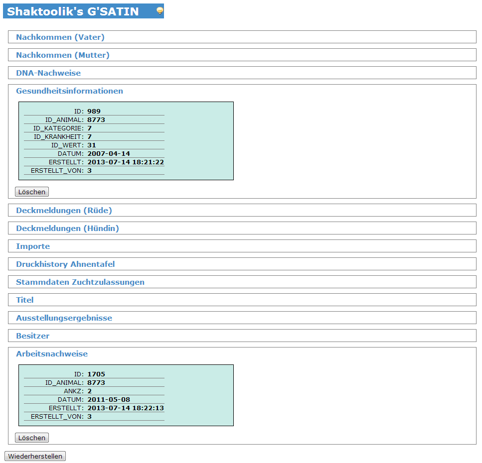 Die Stammdaten des gelöschten Hundes lassen sich durch einen Kilck auf die Namenszeile ein-/ausblenden.